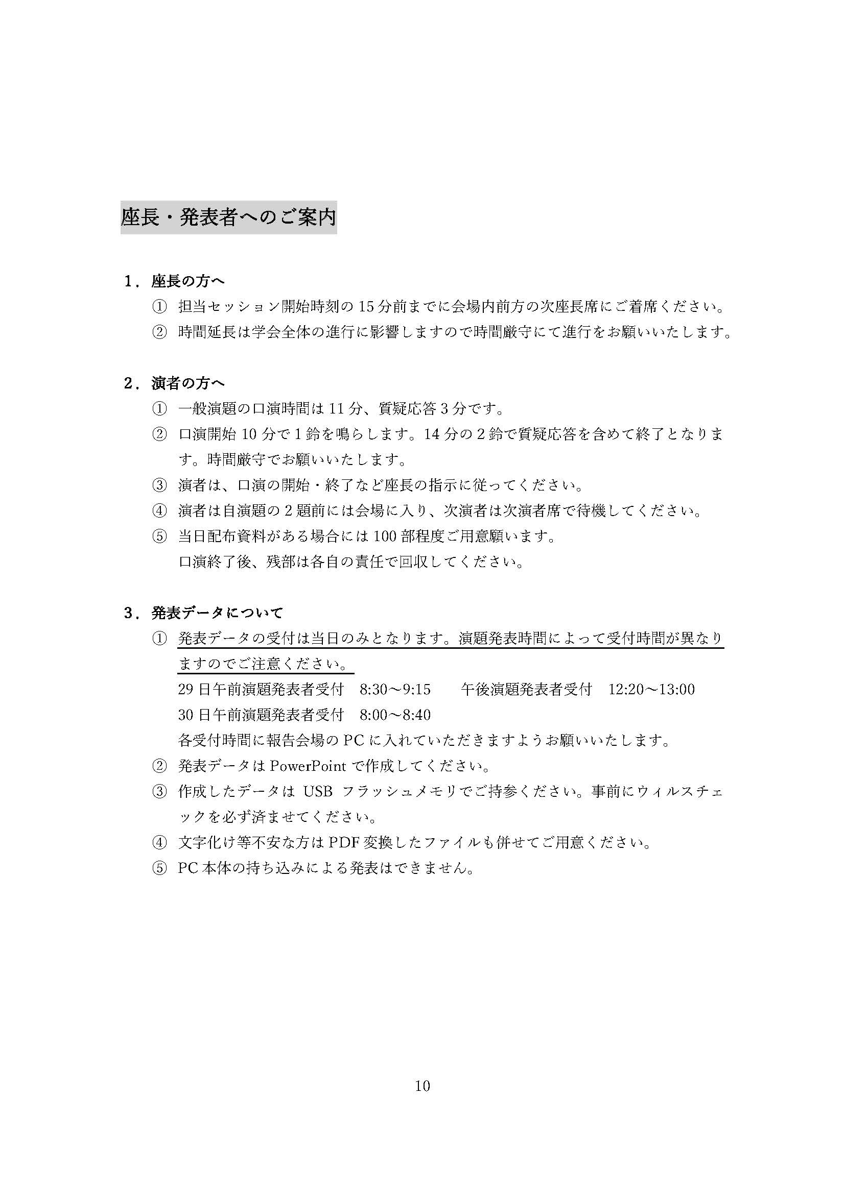 | 昼食弁当代 | 29日・30日 各日1,100円(要事前申込み) 会場周辺の飲食店は,週末は特に混雑しますのでご注意ください. |