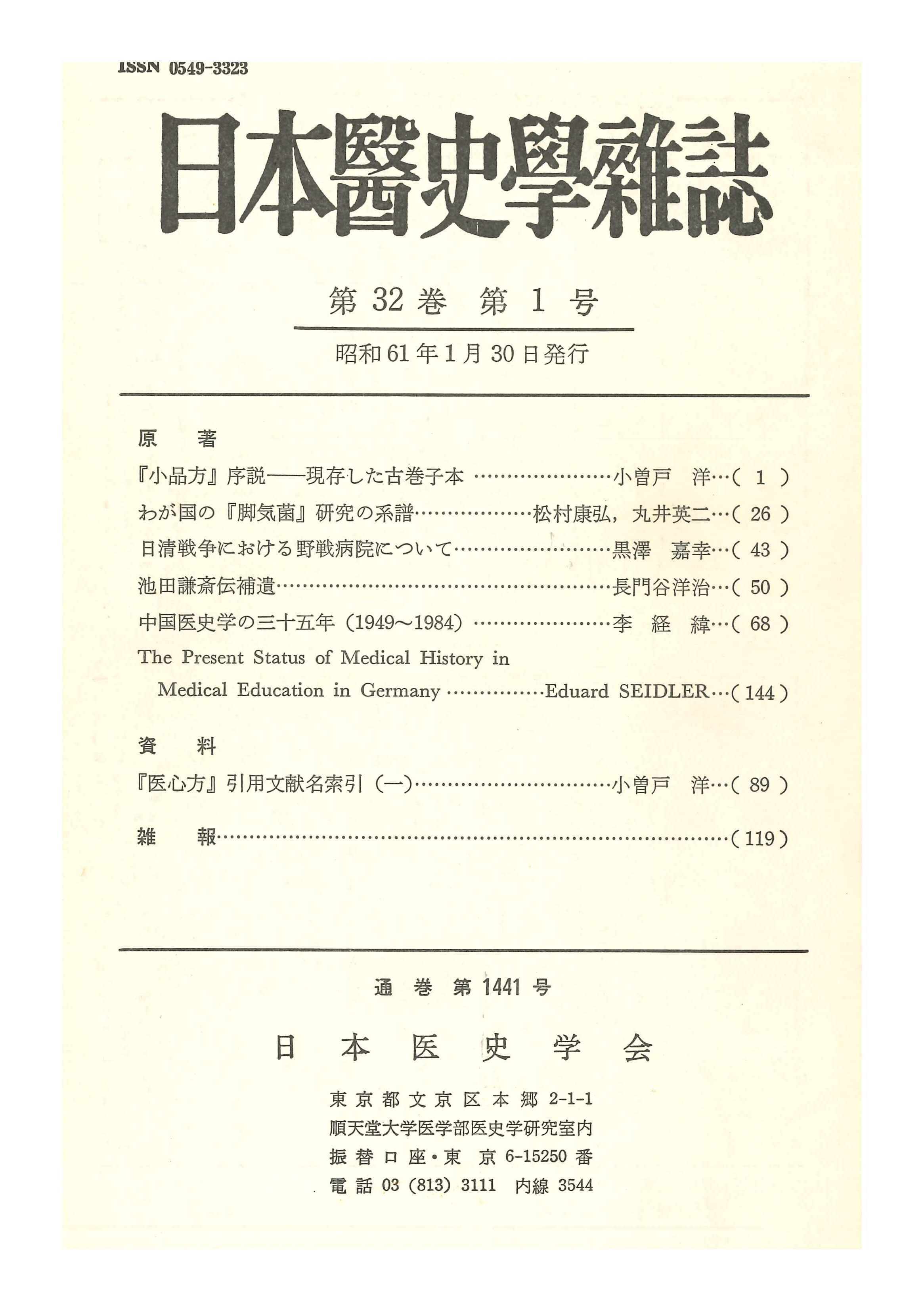 第25回医学史研究会、日本医史学会関西支部(昭和60年秋季)合同総会
