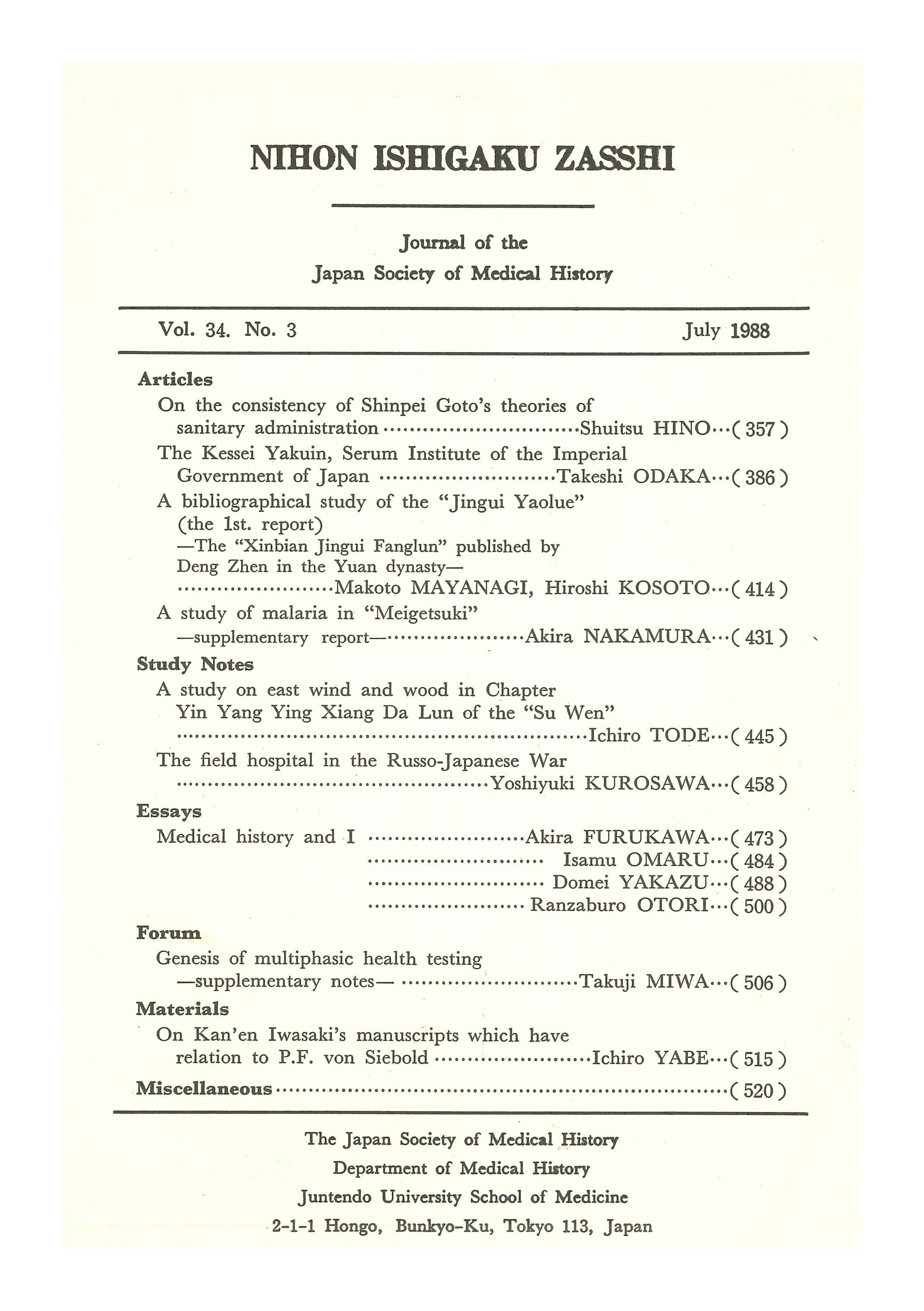 第27回医学史研究会、日本医史学会関西支部(昭和62年秋季)合同総会