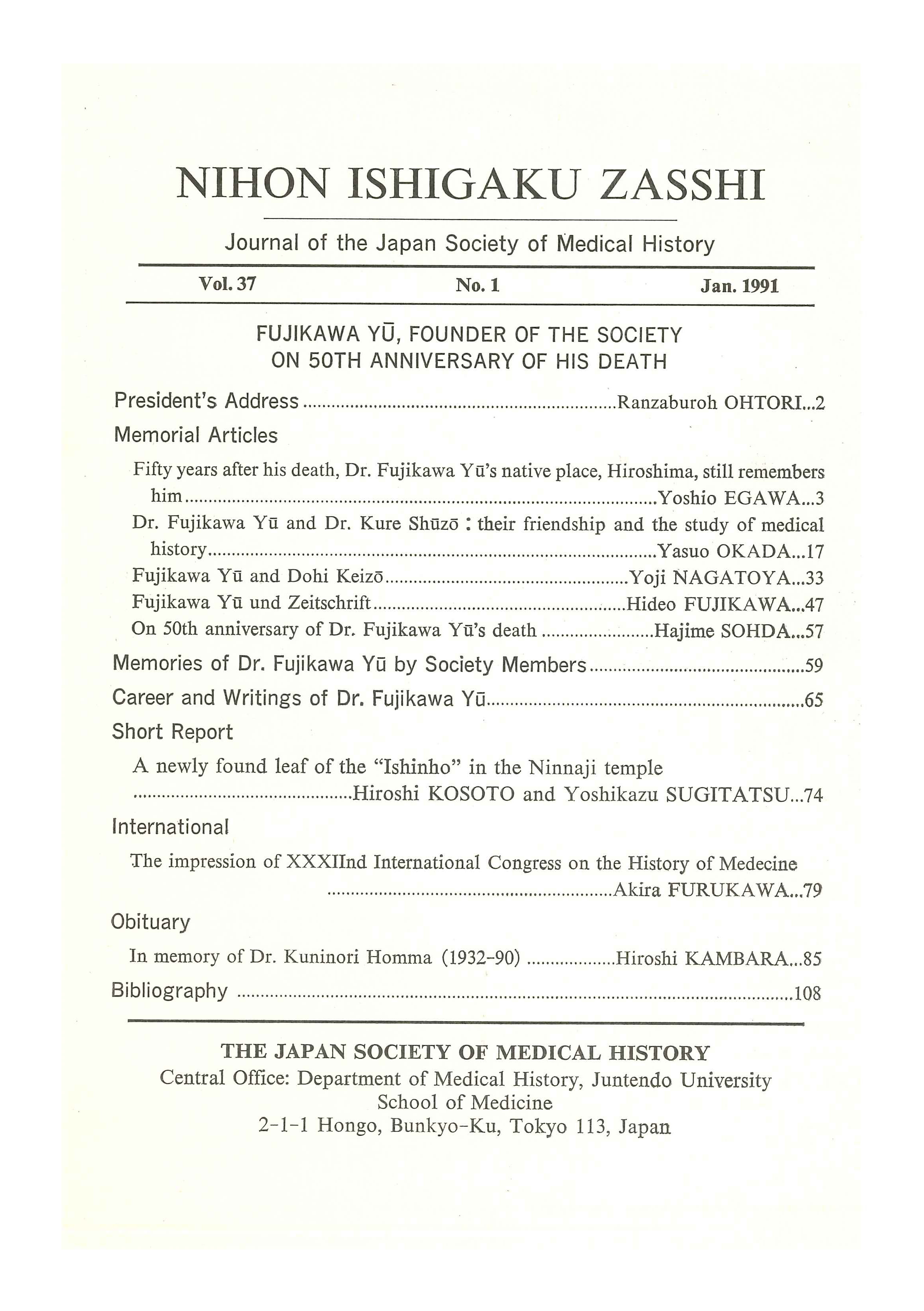 第30回医学史研究会 日本医史学会関西支部(1990年秋季)合同総会